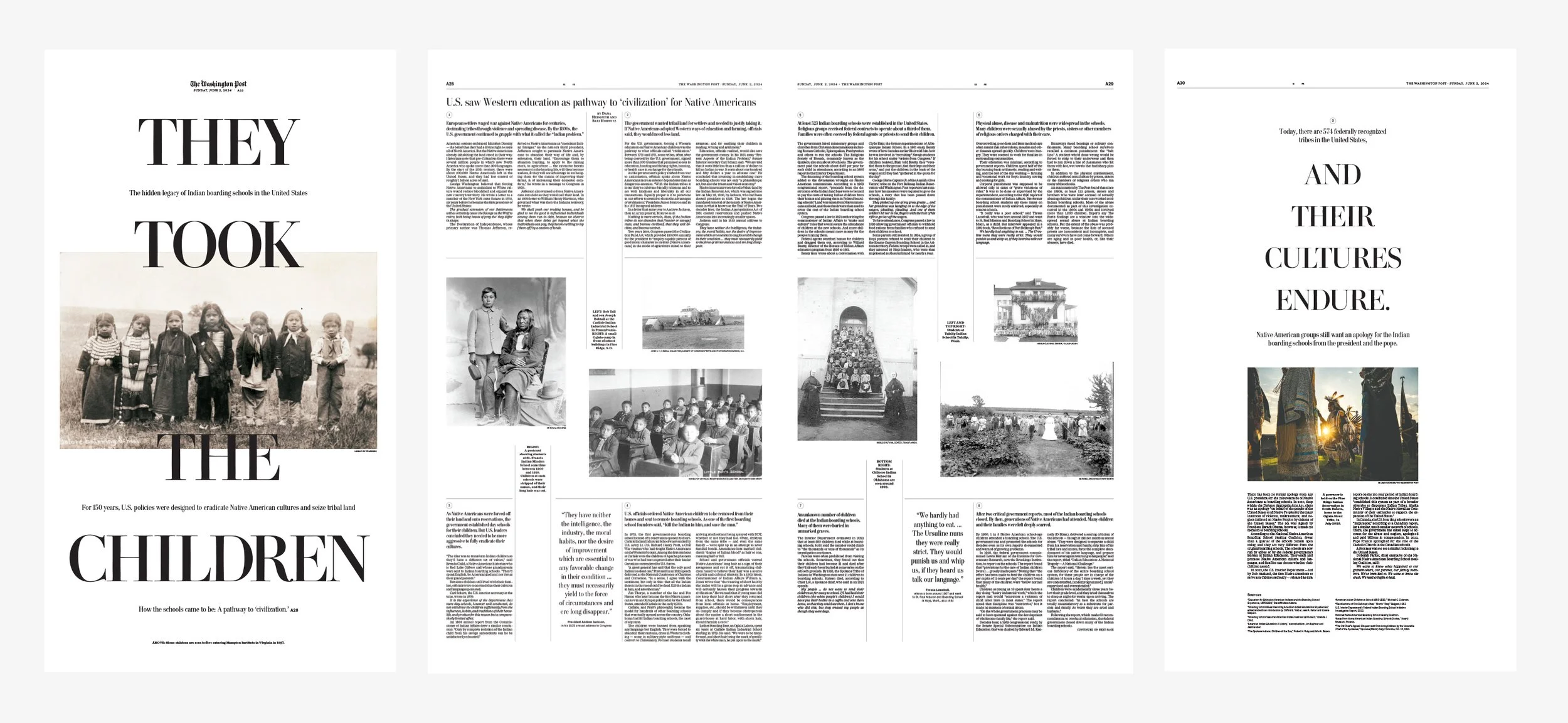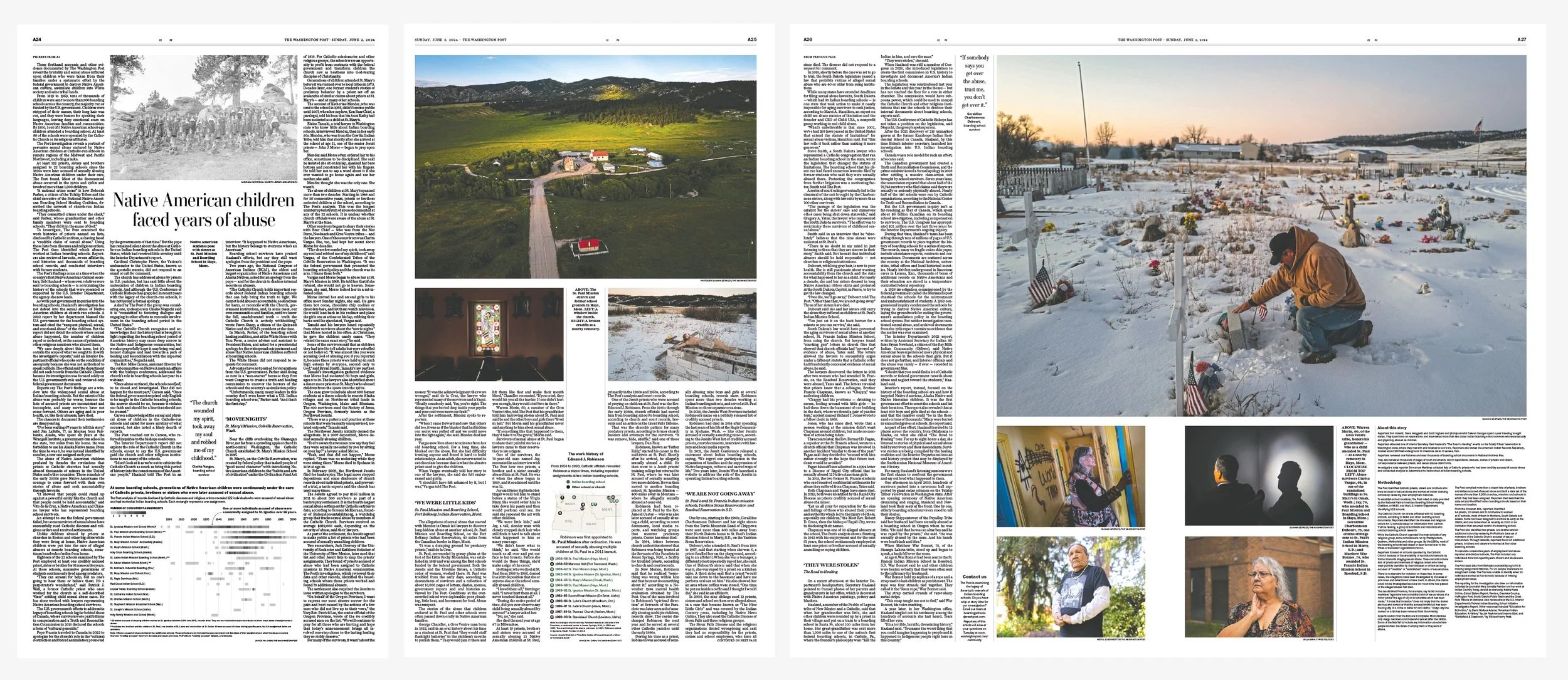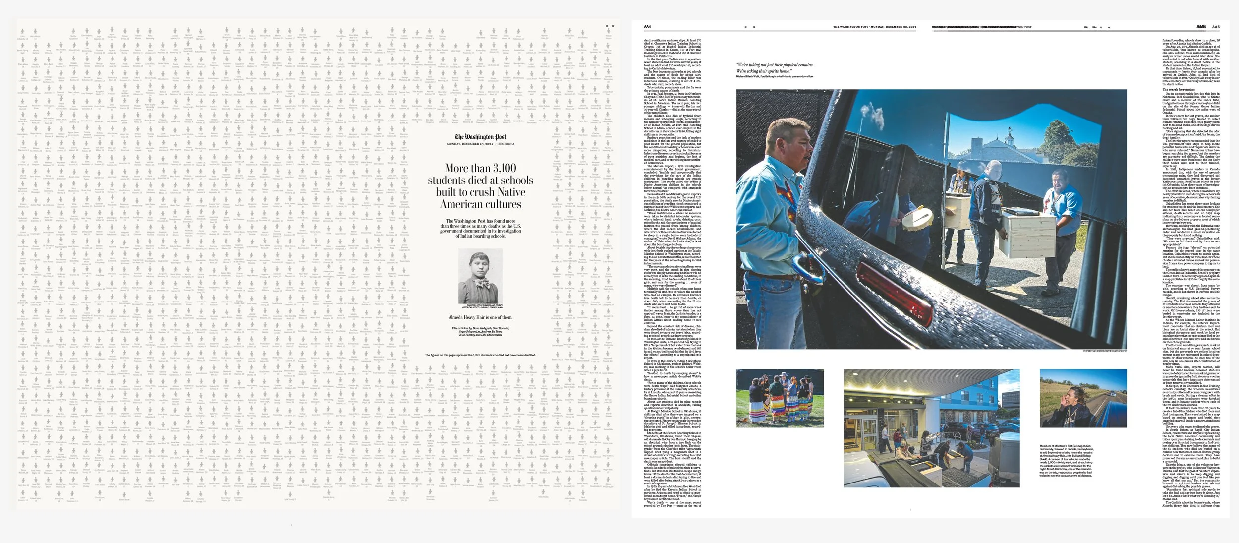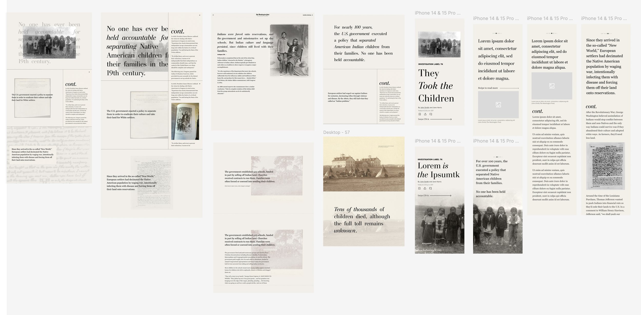 For the last few months of 2023 and all of 2024, I worked on our Native American Boarding Schools project. The project went through many iterations, as you can see by the wireframes. In the end, there were three stories, two special print sections.